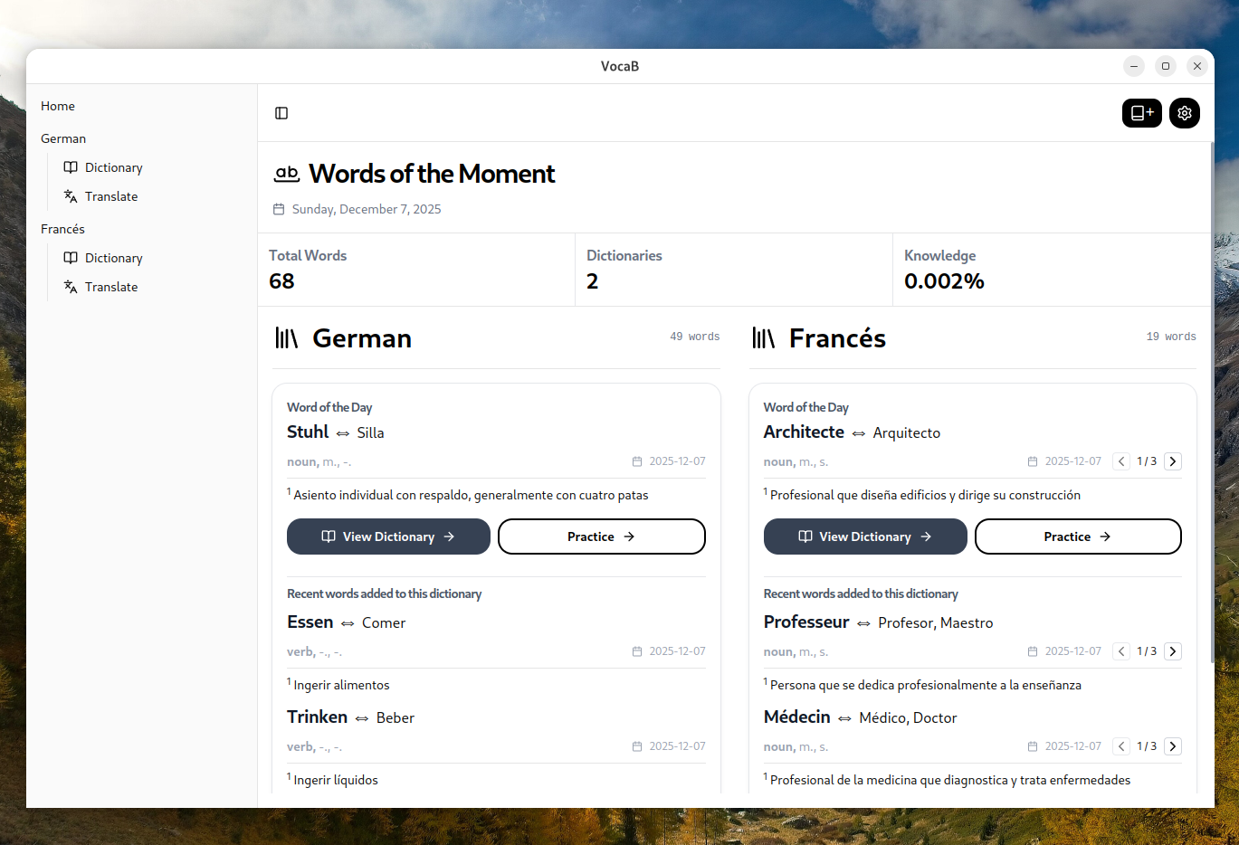 Un proyecto en el que doy mis primeros pasos con Electron para crear una aplicación de escritorio multiplataforma para el aprendizaje del vocabulario, utilizando Tailwind para el diseño y archivos JSON sencillos para el almacenamiento de datos.